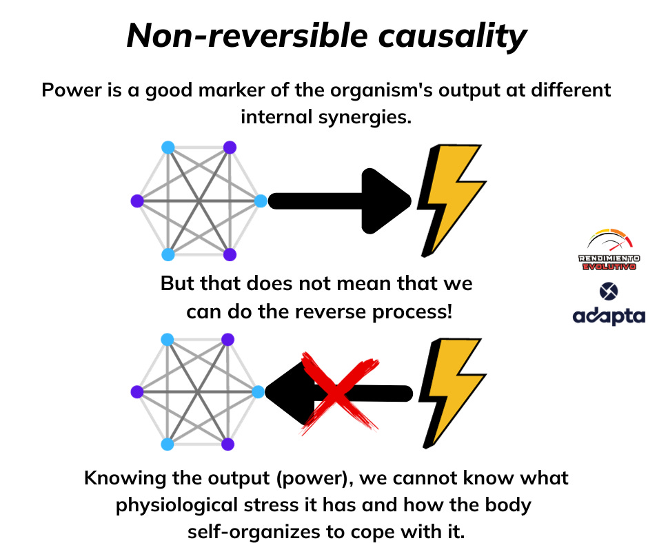 Thus, extrapolating physiological effects from external load data always leads to errors that result in false assumptions and therefore incorrect training. They confuse the arrow of causality.